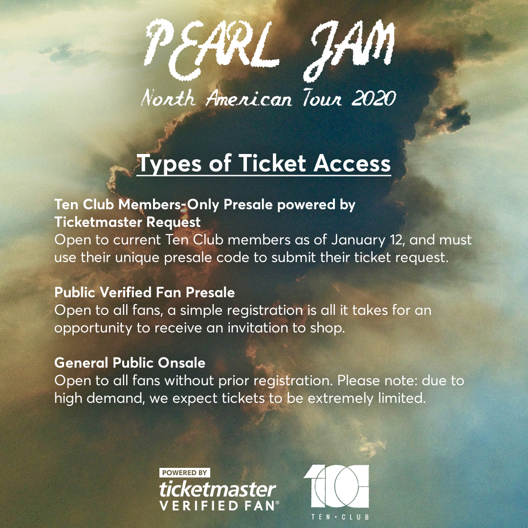 Pearl Jam Ticketmaster Presale Code Pearl Jam Ten Club Ticket Presale Info: Het nieuwe album van Pearl Jam wordt โharderโ dan fans verwachten. Dat vertelt gitarist Mike McCready aan het tijdschrift Classic Rock. De 57-jarige muzikant hoopt dat de plaat dit jaar uitkomt. โWe . Het nieuwe album van Pearl Jam wordt ‘harder’ dan fans verwachten. Dat vertelt gitarist Mike McCready (57) aan het tijdschrift ‘Classic Rock’. “Er zit het geluid en de energie in van de eerste .